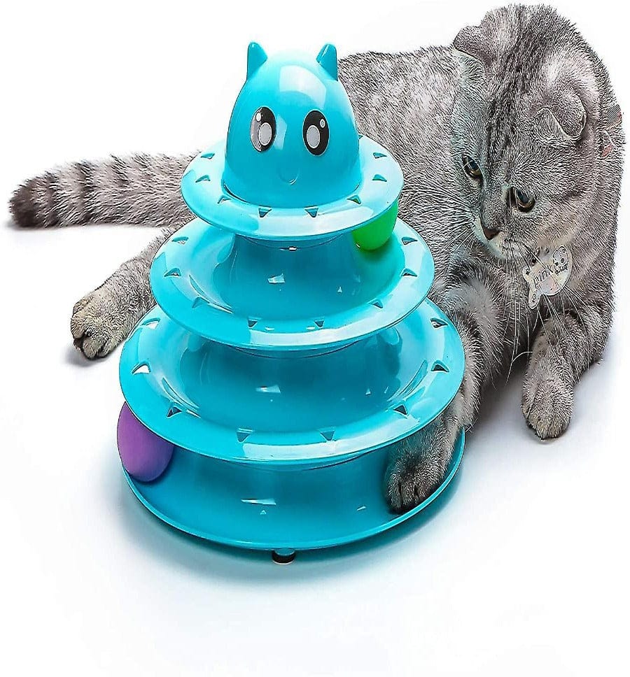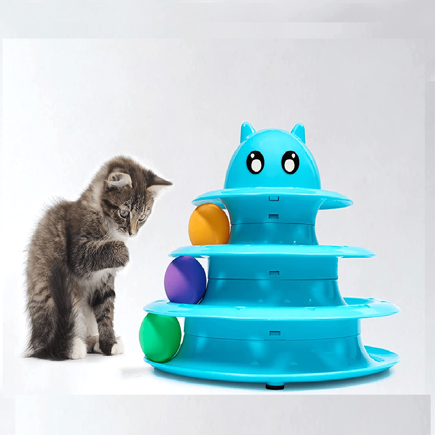 At 18cm / 7" high and 24.5cm / 10" wide, this 3-level cat toy includes 1 colorful kitty ball on each tier, perfect for multiple cats to play and chase. 🐾🎉