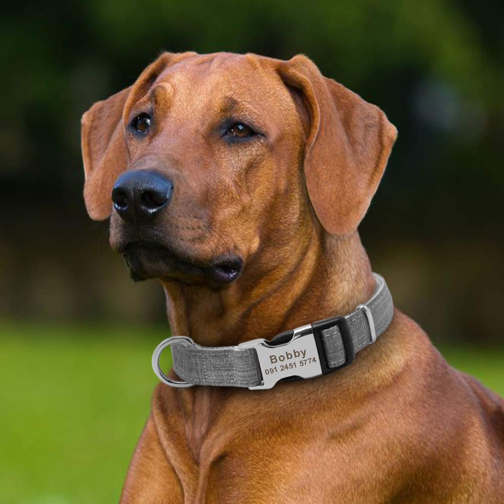 Elevate your dog's look with our Premium Engraved Collars, a blend of durability and style.
