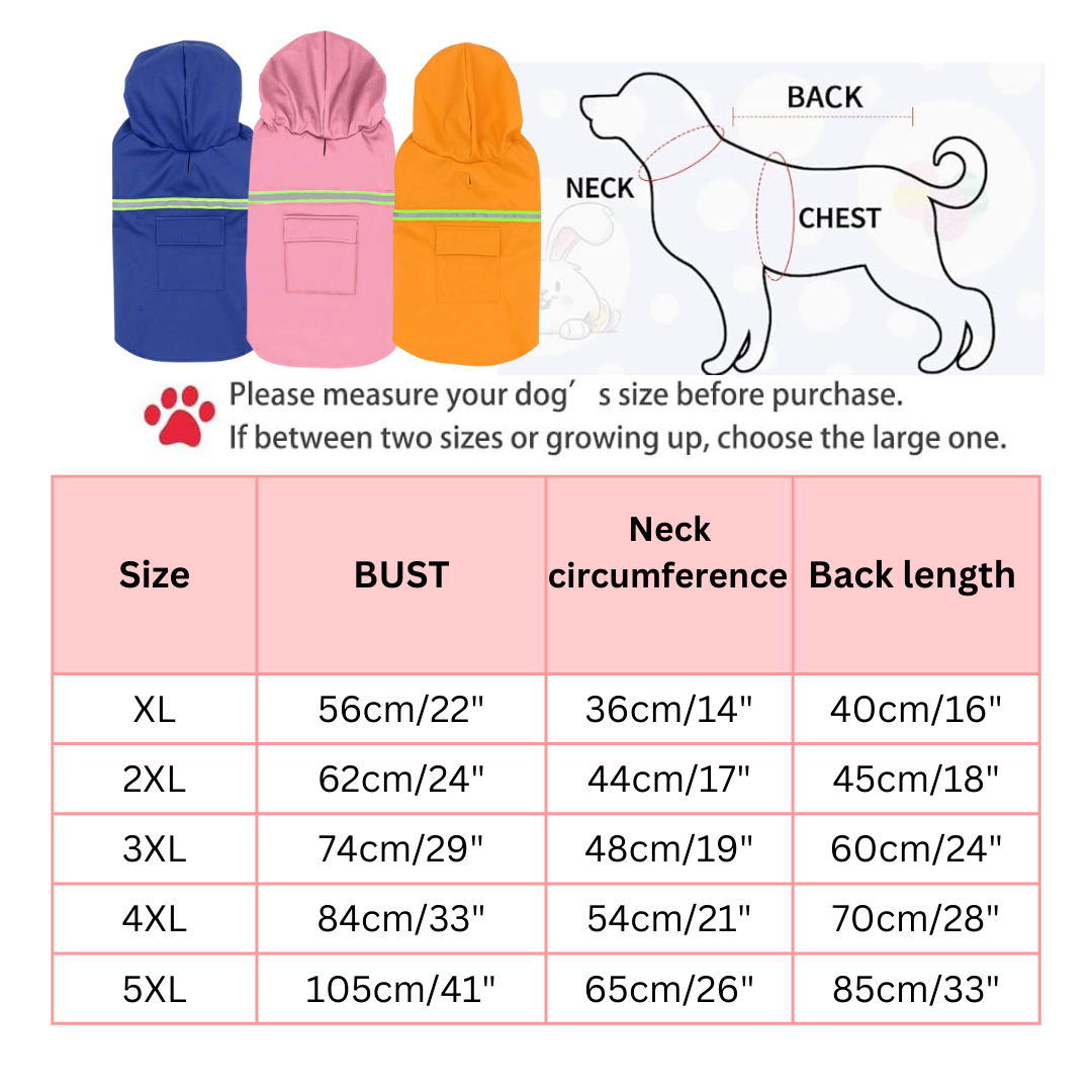 Ensure your large dog stays dry and stylish in all weather with our Reflective Dog Raincoat.