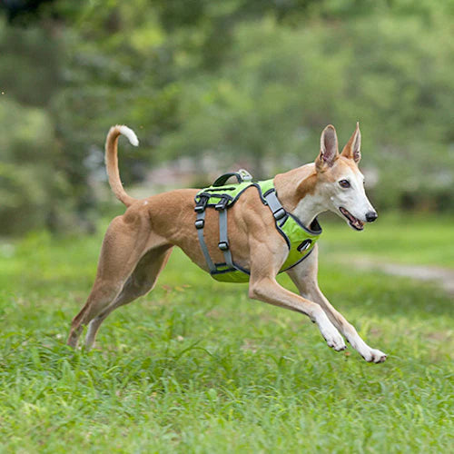 This strong nylon harness evenly distributes pressure on your pooch, comfortable and breathable and slips on in seconds