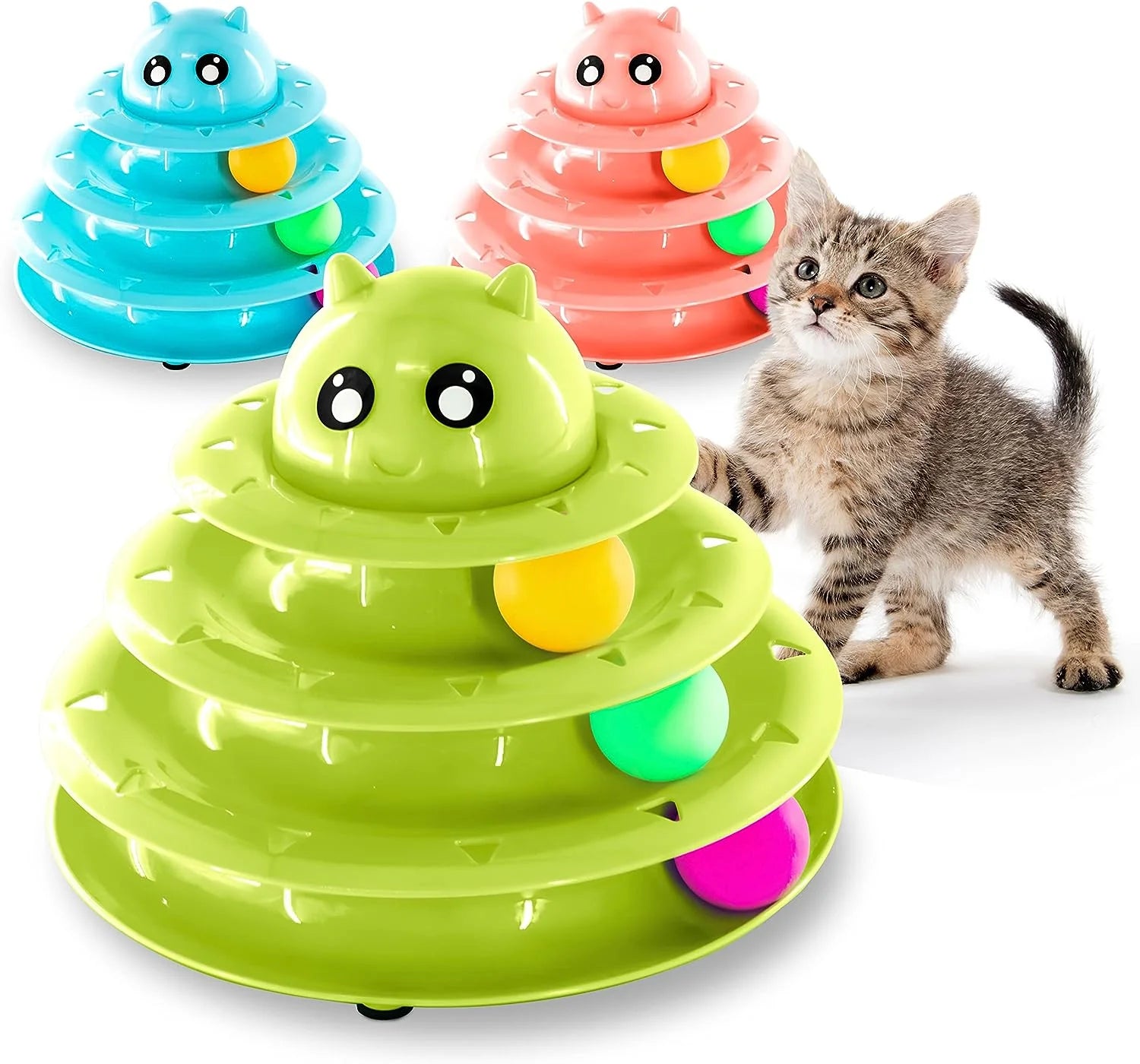 At 18cm / 7" high and 24.5cm / 10" wide, this 3-level cat toy includes 1 colorful kitty ball on each tier, perfect for multiple cats to play and chase. 🐾🎉