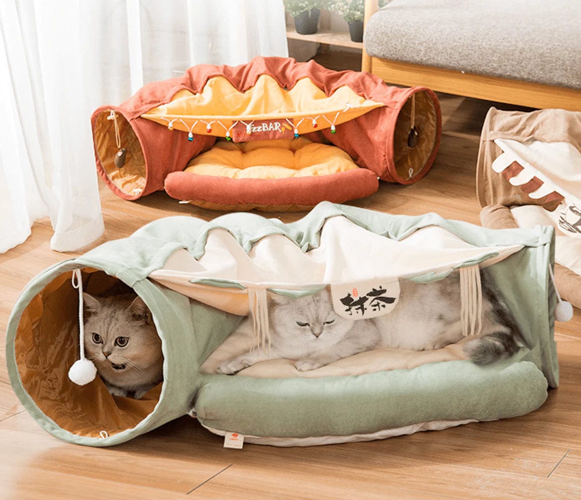 Elevate your cat's relaxation and playtime with our Collapsible Cat Tunnel Bed.