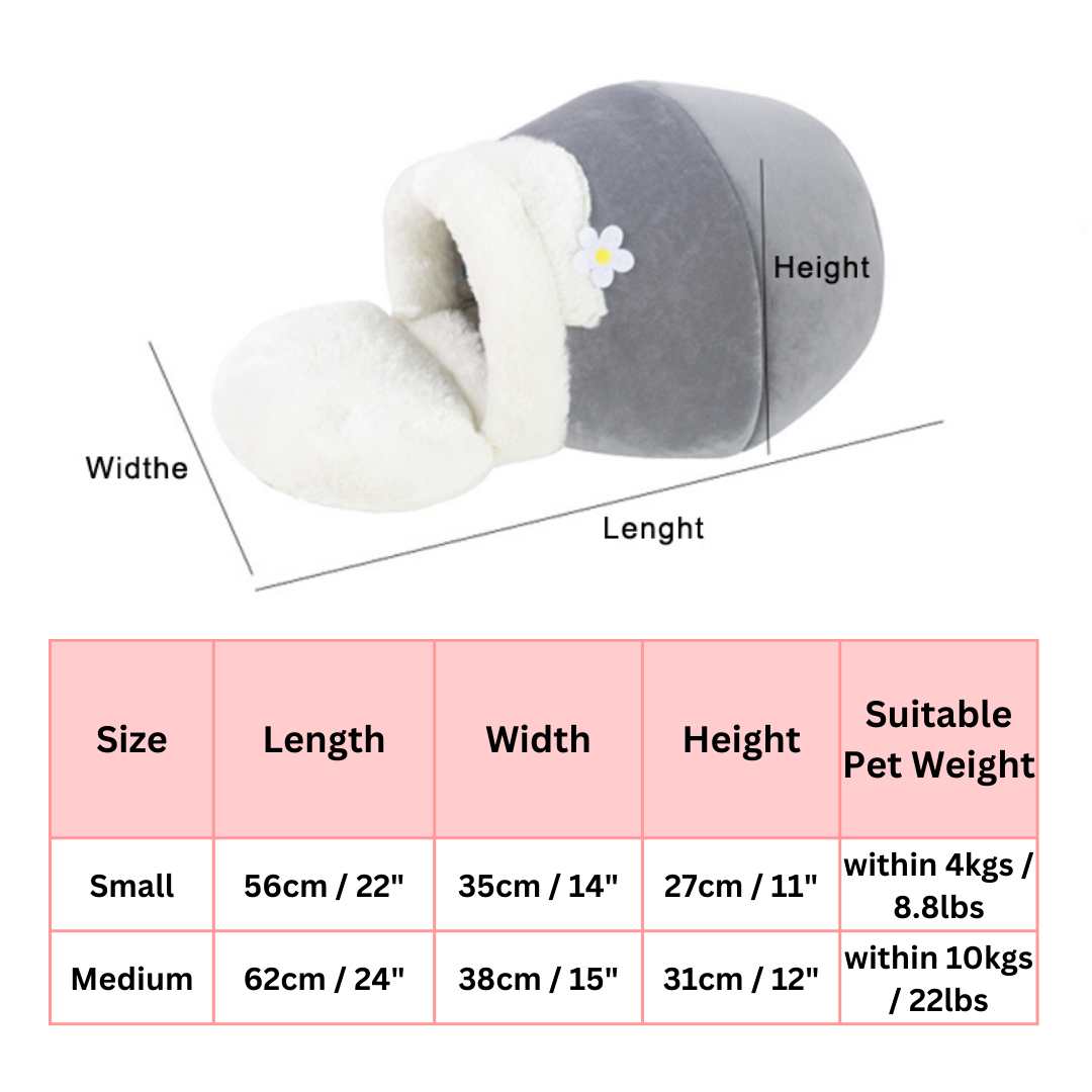 Crafted with love, this versatile bed offers a calming nest for your fur baby, providing a honeypot, a cave, and a sofa for them to snooze in their preferred position.