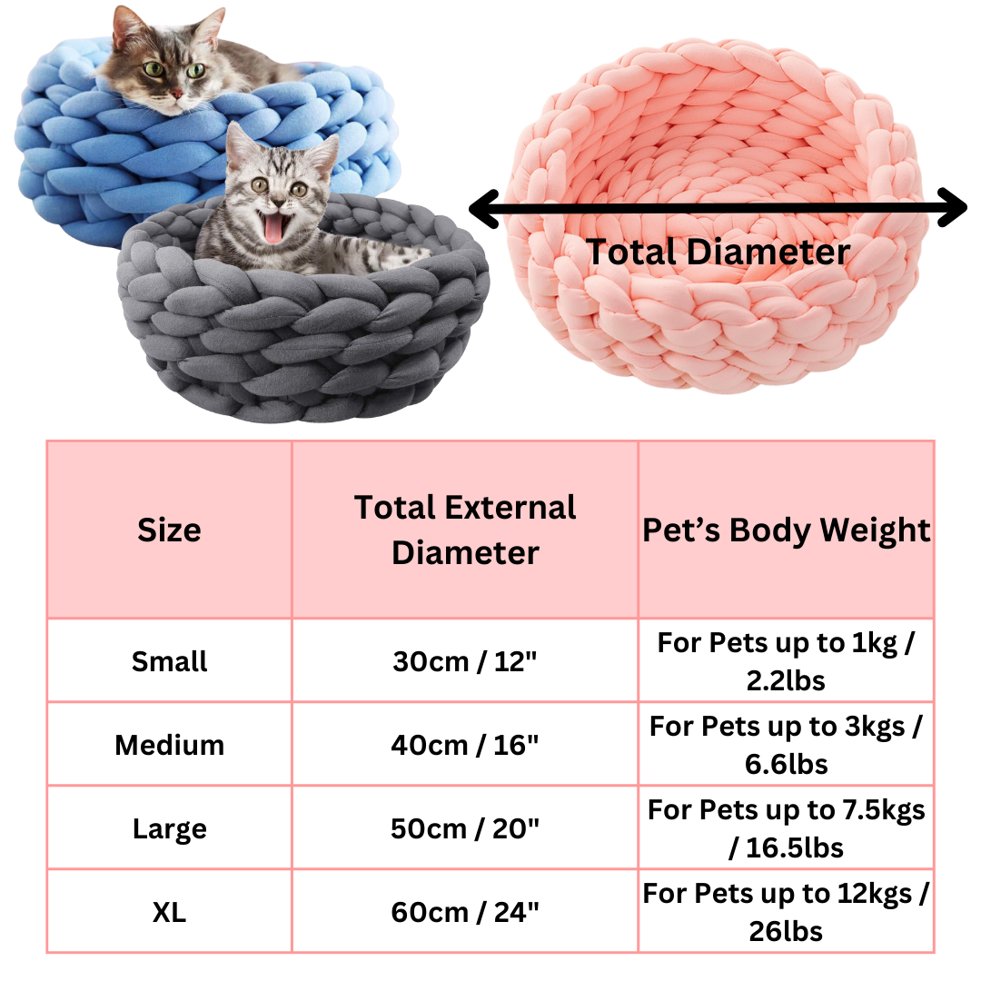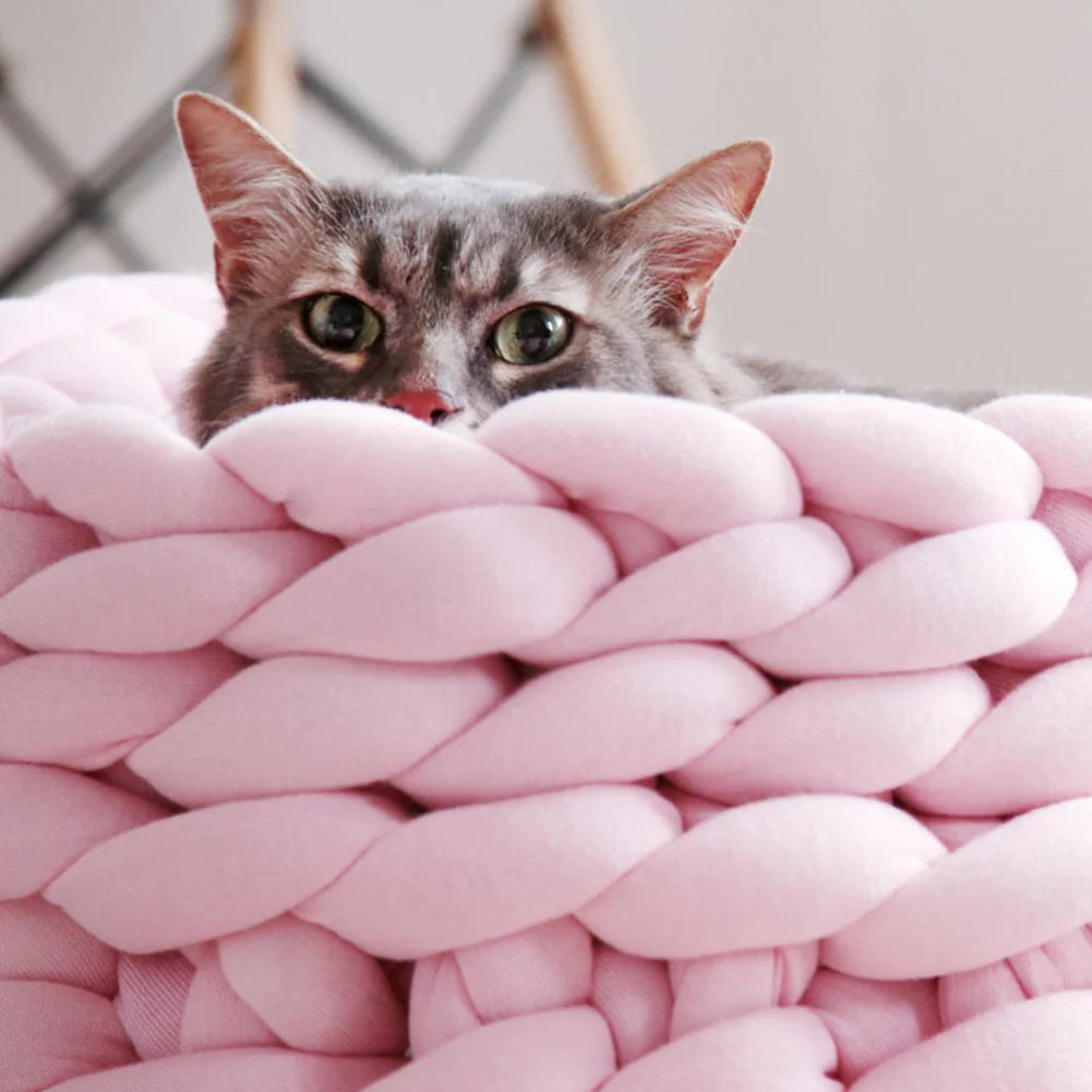 Treat your feline friend to the epitome of comfort with our hand-knitted cat bed.