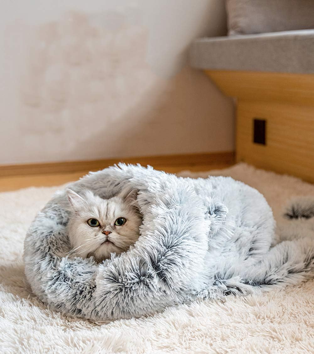 🏡 Hooded Design: Provides a sense of security and privacy with a hooded or cave-like structure. Giving your cat the perfect warm nest to snuggle.
