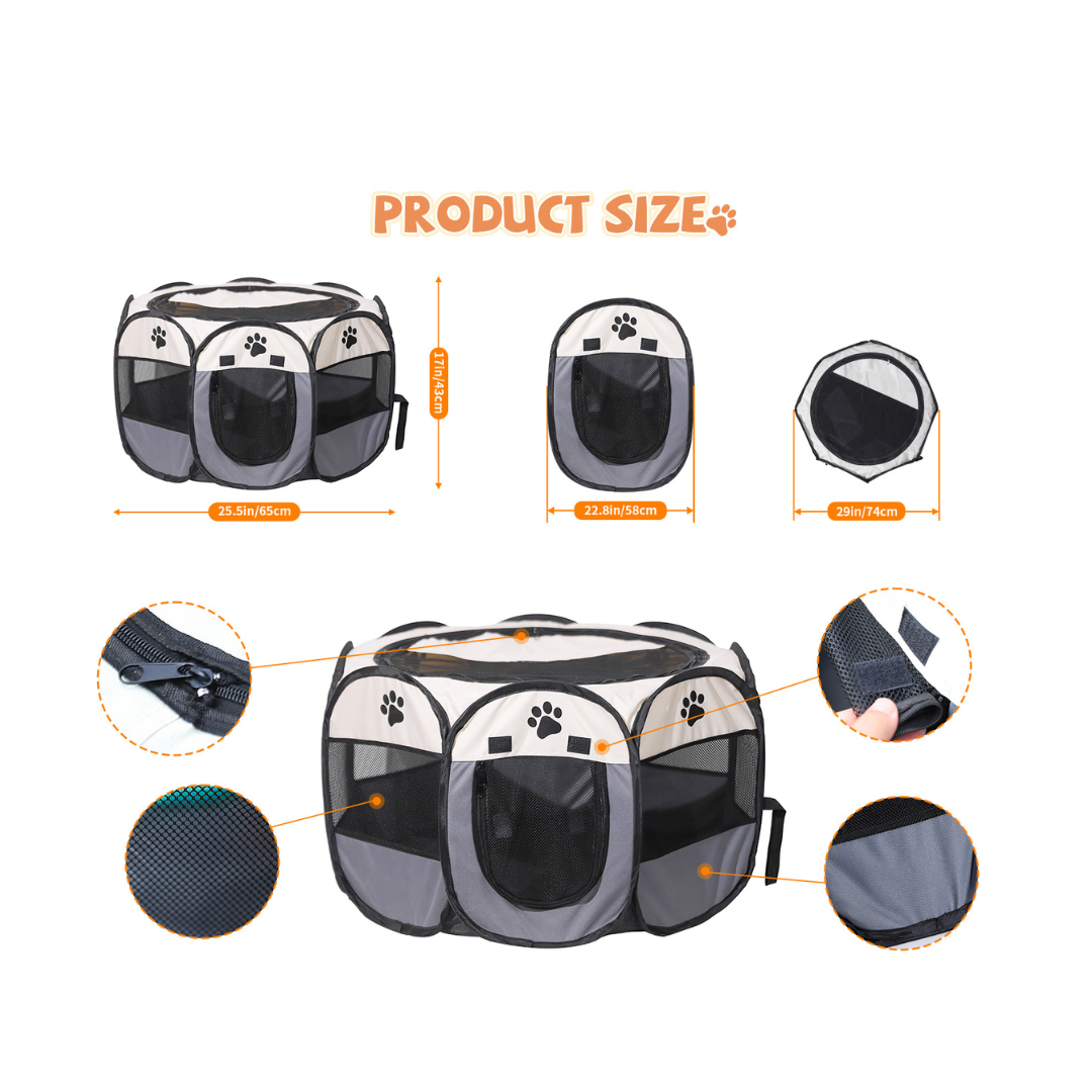 Ensure your pets' safety and happiness with our Foldable Pet Playpen. Suitable for small dogs and puppies. it provides a secure space for them to enjoy, whether indoors or outdoors.