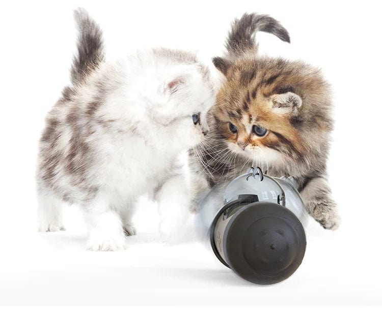 The rotating mechanism makes it move and wobble, dispensing treats from a hidden compartment, rewarding your furry friend for their interaction.